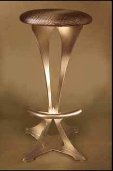 On your left is the Altera bar stool without backrest, shown in silver finish with bulk armor upholstery. It measures 30.5” high, 20.5” across, and weighs 23.5 lbs.